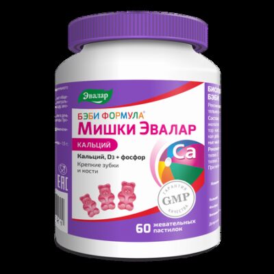 Большинство специалистов рекомендуют заботиться о здоровье зубов, красоте улыбки и крепости костей с самого детства. Сложно переоценить роль кальция в этом вопросе. Чтобы снизить риск возникновения кариеса, в первую очередь необходимо обратить внимание на питание ребенка: достаточно ли кальция в его рационе, и при необходимости выбрать ребенку кальцийсодержащий комплекс, разработанный специально для детей, с учетом возрастных особенностей и потребностей детского организма в кальции и витамине D3. В этом случае идеально подойдет Бэби Формула Мишки Кальций. Это уникальный1 комплекс, разработанный специально для детей и содержащий сбалансированные профилактические дозировки кальция, витамина D и фосфора. Действуя вместе, компоненты комплекса Бэби Формула Мишки Кальций способствуют: Снижению риска развития кариеса Укреплению зубов и костей Формированию правильной осанки Преимущества: done Приятный ягодный вкус done Без искусственных красителей, ароматизаторов и консервантов done Без глютена и ГМО done Высокое качество гарантировано международным стандартом качества GMP2. Как работают ингредиенты Кальций является главным составляющим компонентом костей и зубов. Он играет важнейшую роль для роста детей. Но кальций не способен усвоиться без помощи витамина D3. Витамин D3 участвует в минеральном обмене, влияя на усвоение кальция, поэтому без такого витамина кости и зубки ребенка будут менее твердыми и более хрупкими, а их развитие нарушится. Нехватка витамина D3 сказывается на росте костей и провоцирует истончение эмали зубов. Также он способствует лучшему усвоению и фосфора. Фосфор обеспечивает сопротивляемость наружного слоя эмали и является наиболее эффективным в детском возрасте, когда эмаль еще не зрелая. Именно от этого элемента во многом зависит красивая белизна зубов и блеск, а также прочность эмали. Без него зубы могут стать ослабленными, тусклыми, более подверженными разрушительному воздействию.