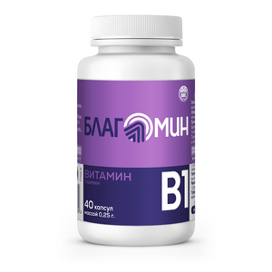 Внешний вид и свойства:Твердые желатиновые капсулы с однородной порошкообразной массой. Наличие легко рассыпающихся комков. Цвет от белого до светло бежевого. Запах специфический, свойственный витаминам. Вкус, свойственный вкусу витаминов.В 1 капсуле содержится — 2,5 мг тиамина, что составляет 179% от рекомендованного уровня суточного потребления и не превышает верхний допустимый уровень потребления.Для восполнения дефицита витамина В1 допускается приём 2 капсул в день (357% от рекомендованного уровня суточного потребления витамина В1, не превышает верхний допустимый уровень потребления).Витамин В1 участвует в метаболизме углеводов, жира, аминокислот, глюкозы и алкоголя, особенно важен для функций центральных и периферических нервных клеток и миокарда. Важно обеспечить адекватный уровень поступления тиамина с пищей (мясо, бобовые).Риск дефицита тиамина повышается у людей, употребляющих пищу с высоким содержанием рафинированных углеводов, такую как шлифованный рис, белая мука, сахар, или у людей, страдающих алкоголизмом.Вторичный дефицит возникает при увеличении потребности организма в витамине В1 (например, в связи с гипертиреозом, в период беременности и лактации, при физических нагрузках или в связи с повышением температуры),при нарушение всасывания (например, в связи с длительной диареей), при нарушении обмена веществ (например, в связи с печеночной недостаточностью).