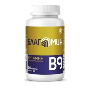 В качестве биологически активной добавки к пище — дополнительного источника витамина В9Витамин В9 (фолиевая кислота) – получил название фолиевая кислота, так как содержится в листьях зеленых растений. Имеет особое значение для процессов роста и развития, характеризующихся высокой скоростью синтеза белка и нуклеиновых кислот, положительно влияет на жировой обмен в печени, обмен холестерина и ряда витаминов, необходим для поддержки нервной, иммунной, сердечно-сосудистой систем, костной ткани, системы кроветворения. Витамин В9 (фолиевая кислота) рекомендуется при планировании беременности, для предупреждения риска фолиеводефицитной анемии, людям в пожилом возрасте, а также при злоупотреблении алкоголем, кофе и курении.Обеспечить адекватный уровень поступления фолиевой кислоты с пищей можно, употребляя листовые овощи, печень, печень трески, хлеб и крупы, бобовые. Риск дефицита витамина В9 повышается у людей при ограниченном потреблении фолатосодержащих продуктов питания, при заболеваниях ЖКТ, сахарном диабете и гипотериозе, при полиморфизме гена MTHFR, при приеме ряда лекарственных средств, в пожилом возрасте, при злоупотреблении алкоголем, кофе, курении.БЛАГОМИН В9 – это дополнительный источник витамина В9 (фолиевой кислоты). В 1 капсуле Благомин Витамин В9 содержится 500 мкг фолиевой кислоты, что составляет 250% от рекомендованного уровня суточного потребления (не превышает верхний уровень потребления). Разрешен к применению с 14 лет. Одной упаковки Благомин Витамин В9 №90 достаточно на 3 курса применения.