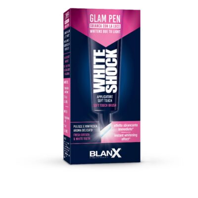 Отбеливающий карандаш BlanX White Shock Glam Pen – быстрый и удобный способ отбелить зубы! Гель не содержит агрессивных абразивных веществ и пероксидов. При этом ощутимый эффект от применения карандаша BlanX White Shock виден уже после первого применения,благодаря революционной формуле, в основе которой лежит Actilux®. Это запатентованный активный компонент, который усиливает свое действие благодаря свету естественным способом. Карандаш отбеливает на 1-2 тона по шкале Вита. ActiluX, содержащийся в BlanX White Shock, активируется дневным светом, продуцируя фотохимическую реакцию с кислородом и водой, присутствующими в окружающей среде. Таким образом формируются радикалы, безопасные для организма, но разрушающие чужеродные органические молекулы, в том числе зубной налет. Результат проявляется в виде отбеливающего и антибактериального эффекта, потому что зубная паста действует на поверхности зубов, удаляя бактериальную пленку. Отбеливающий карандаш BlanX White Shock может использоваться как самостоятельное отбеливающее средство и в качестве поддерживающего для сохранения результата отбеливания. Благодаря удобному способу нанесения с мягкого аппликатора можно выборочно отбелить наиболее проблемные зубы или участки.