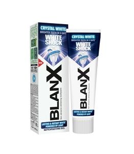 Зубная паста White Shock Crystal White Усовершенствованная формула для длительного сияния эмали. Как работает:1) Экстракты арктических лишайников – осветляют эмаль, оказывают антибактериальное действие. 2) Взаимодействие кислорода, слюны и специального спектра света активируют действие кристаллов ActiluX, которые придают эмали белизну и сияние.3) Ионы фтора – укрепляют эмаль и предотвращают повторное образование налёта.4) Неабразивная силика – мягко устраняет налёт, сохраняя целостность эмали.Преимущества:Мгновенный отбеливающий эффект.Зубы белее с каждой улыбкой.Безопасно осветляет эмаль на 2-4 тона.Активна на зубных протезах и пломбах.Подходит для ежедневного применения.Белизну и блеск вашим зубам обеспечит уникальный тандем:Blue Formula + Неабразивная силикаBlue Formula. Запатентованный компонент, который придает мгновенный отбеливающий эффект.Неабразивная силика. Устраняет налет на эмали, не повреждая ее.