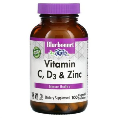 Bluebonnet Nutrition, Витамин C, D3 и цинк, 100 растительных капсул