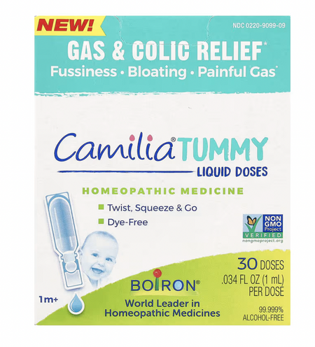 Новый дизайн упаковки! Уменьшение симптомов газообразования и колик* Беспокойное состояние, вздутие, болезненное газообразование Гомеопатические средства Откройте ампулу, выдавите содержимое — и готово! Не содержит красителей Сертификат Non-GMO Verified Мировой лидер гомеопатических препаратов На 99,999% не содержит спирта Без консервантов Без красителей Без ароматизаторов Без искусственных подсластителей Чистые активные ингредиенты Применение*. Временно устраняет симптомы газообразования и колик, такие как: боль в животе; вздутие; беспокойное состояние и плач; обильное или болезненное газообразование. Лучшее средство Мы в компании Boiron уверены, что существует лучшее средство для хорошего самочувствия. С 1932 года семья Буарон (Boiron) занимается созданием чистейших препаратов, используя экологически безопасные методы. Мы являемся мировым лидером в области гомеопатических препаратов, поэтому строго следим за качеством, а наша основная цель — ваше хорошее самочувствие. Гарантия Boiron Ваше здоровье заслуживает самого большого уважения. Вот почему мы стремимся к тому, чтобы вы остались довольны. Мягкая формула для облегчения боли при газообразовании и беспокойного состояния*. * Данные заявления основаны на опыте применения гомеопатических средств, а не данных официального медицинского заключения. Рекомендации по применению Дети от 1 месяца и старше: дайте 1 дозу при появлении симптомов, подождите 15 минут, затем повторите, если необходимо, всего до 9 доз в день. Для достижения наилучших результатов принимайте перед едой. 1. Разорвите пакет из фольги по надрезанному краю. 2. Возьмите одну отмеренную дозу. 3. Поверните, чтобы открыть. 4. Выдавите все содержимое в рот. Предупреждения Не используйте, если у вашего ребенка аллергия на какой-либо ингредиент этого продукта. Прекратите использование и обратитесь к врачу, если симптомы сохраняются более 3 дней или ухудшаются. Хранить в недоступном для детей месте. В случае передозировки немедленно обратитесь за медицинской помощью или в токсикологический центр. Не используйте, если приклеенные торцевые клапаны картонной коробки открыты или внутренний пакет из фольги и флаконы повреждены. Не хранить в холодильнике и не замораживать После вскрытия упаковки из фольги: храните неиспользованные флаконы в упаковке из фольги не более 3 месяцев. После вскрытия флакона продукт следует использовать немедленно. После применения: утилизировать флакон. Не использовать повторно Содержит 0,0008% спирта