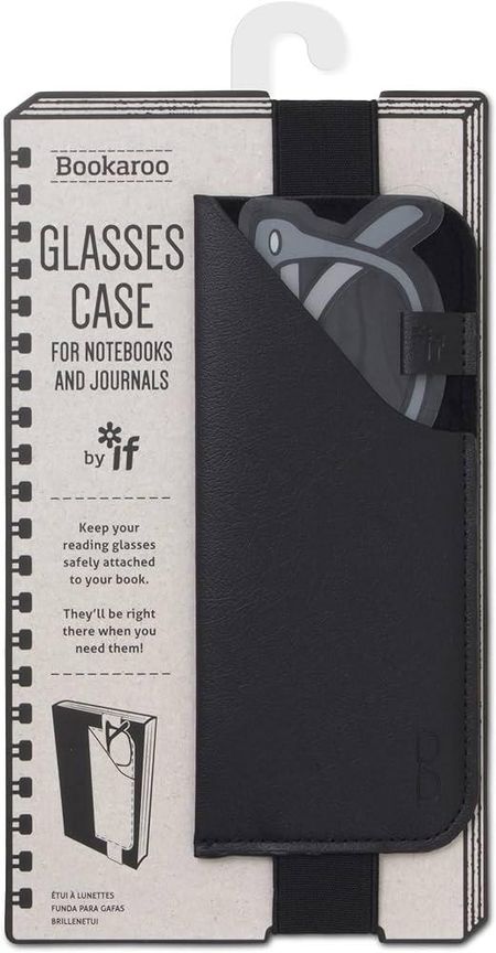 The «Bookaroo Glasses Case» in Black is a stylish and practical accessory designed to protect and carry your eyeglasses or sunglasses with sophistication. This sleek black glasses case offers a combination of functionality and elegance, making it a great choice for those who appreciate both fashion and eye care. Never lose your glasses! Fits A5 style notebooks and novels too! Great for sunglasses too Superior quality leather effect PU Reading glasses HAVE to be one of the most misplaced items the world over! But slide the flexible elastic over your notebook, journal or novel cover, slide your specs into the velour lined pouch and tah dah! They’ll be right there when you need them next! One of the most useful gifts you can give! Product in packaging: 12 x 1 x 23cm Display: 15 x 24 x 27cm