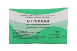 Мелкий кристаллический порошок белого цвета.Средство «Борная кислота порошок» проявляет бактерицидное действие в отношении грамположительных и грамотрицательных бактерий (в том числе в отношении возбудителей внутрибольничных инфекций) (кроме микобактерий туберкулеза) и грибов рода кандида. Средство «Борная кислота, порошок» по параметрам острой токсичности относится к 4 классу малоопасных соединений согласно ГОСТ 12.1.007-76 при нанесении на кожу, введении в желудок и ингаляционном воздействии. Местно-раздражающие, кожно-резорбтивные и сенсибилизирующие свойства в рекомендованных режимах применения у средства не выявлены. Средство обладает умеренным раздражающим действием на слизистые оболочки глаз. ПДК в воздухе рабочей зоны борной кислоты – 10 мг/м3 (аэрозоль, 3 класс опасности).