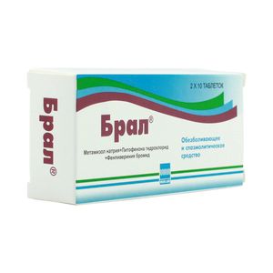 Показания к применениюболевой синдром слабой или умеренной выраженности при спазмах гладкой мускулатуры (почечная и желчная колики, спазм кишечника, дисменорея и др.),невралгия,артралгия,миалгия,боли после диагностических и хирургических вмешательств,лихорадка при простудных и инфекционно-воспалительных заболеваниях.Применение при беременности и кормлении грудьюПротивопоказан при беременности и в период лактации.Противопоказаниягиперчувствительность,выраженные нарушения функций печени и почек,врожденный дефицит глюкозо-6-фосфатдегидрогеназы,тахиаритмия,коллаптоидное состояние,нарушение кроветворения,закрытоугольная глаукома,непроходимость кишечника,мегаколон,гипертрофия предстательной железы с тенденцией к накоплению остаточной мочи.Побочное действиеВ терапевтических дозах препарат обычно хорошо переносится.Иногда возможны аллергические реакции (кожная сыпь, зуд, очень редко — анафилактический шок).В единичных случаях — чувство жжения в эпигастральной области, сухость во рту, головная боль. Возможны — головокружение, снижение артериального давления, тахикардия, цианоз. При длительном приеме — случаи нарушения системы крови (тромбоцитопения, лейкопения, агранулоцитоз).При склонности к бронхоспазму возможно провоцирование приступа.В очень редких случаях — злокачественная экссудативная эритема (синдром Стивенса-Джонсона), токсический эпидермальный некролиз (синдром Лайелла), снижение потоотделения, парез аккомодации, задержка мочи.Редко (обычно при длительном приеме или назначении высоких доз) — нарушение функции почек: олигурия, анурия, протеинурия, интерстициальный нефрит, окрашивание мочи в красный цвет. Обо всех побочных эффектах следует сообщать лечащему врачу.Состав1 таблетка содержит:метамизола натрия 500 мг, питофенона гидрохлорида 5 мг, фенпивериния бромида 0,1 мг.Взаимодействие с другими препаратамиТрициклические антидепрессанты, пероральные контрацептивы, аллопуринол, нарушают метаболизм в печени и повышают токсичность.Действие усиливают седативные средства и транквилизаторы, ослабляют — барбитураты, фенилбутазон и др. индукторы микросомальных ферментов печени.Др. ненаркотические анальгетики потенцируют побочные эффекты, а циклоспорин снижает плазменный уровень.