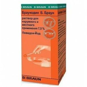 Браунодин Б. Браун — раствор для обработки кожи пациента до и после проведения операций, исследований (биопсия, пункция, взятие крови, инъекции и т.д.), до- и послеоперационной обработки рук хирургов, медицинского персонала, гигиеническая обработка рук при уходе за инфицированными больными, обработка инструмента и предметов ухода за больными.