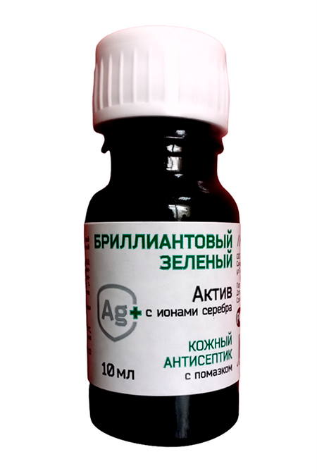 Бриллиант зел спирт Актив с ионами серебра/помазком, 10 мл