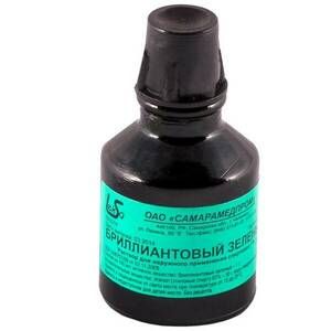 Главная » Аптека Бриллиантовый зеленый 1% раствор спиртовой флакон 10 мл Просмотров 5 Прозрачная интенсивно зеленого цвета жидкость с запахом спирта. Самарамедпром