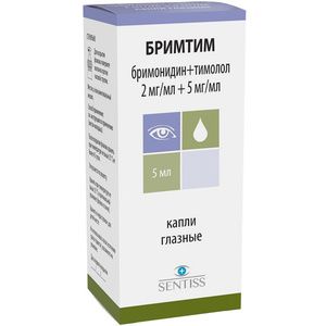 Прозрачный раствор зеленовато-желтого цвета.Характеристика препарата:Препарат Бримтим содержит действующие вещества бримонидин (агонист альфа-адренорецепторов) и тимолол (блокатор бета-адренорецепторов), которые применяются для лечения глаукомы — заболевания, сопровождающегося повышением внутриглазного давления (офтальмогипертензия).Препарат Бримтим — средство, применяемое в офтальмологии для снижения внутриглазного давления.Бримонидин принадлежит к группе препаратов, называемых агонистами альфа-2-адренергических рецепторов.Тимолол принадлежит к группе препаратов, называемых бета-блокаторами.