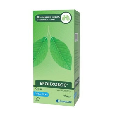 Показания острые и хронические бронхолегочные заболевания, сопровождающиеся образованием вязкой, трудноотделяемой мокроты (трахеит, бронхит, трахеобронхит, бронхиальная астма, бронхоэктатическая болезнь); воспалительные заболевания среднего уха (средний отит); воспалительные заболевания носа и его придаточных пазух (ринит, синусит); подготовка к бронхоскопии и/или бронхографии. Фармакологическое действие Муколитический и отхаркивающий препарат. Муколитическое и отхаркивающее действие обусловлено активацией сиаловой трансферазы — фермента бокаловидных клеток слизистой оболочки бронхов. Нормализует количественное соотношение кислых и нейтральных сиаломуцинов бронхиального секрета. Снижает вязкость бронхиального секрета и отделяемого из придаточных пазух носа, облегчает отхождение мокроты и слизи, уменьшает кашель. Способствует регенерации слизистой оболочки, нормализует ее структуру, активизирует деятельность реснитчатого эпителия. Восстанавливает секрецию иммуноглобулина IgA (специфическая защита) и количество сульфгидрильных групп компонентов слизи (неспецифическая защита), улучшает мукоцилиарный клиренс. Лекарственное взаимодействие Повышает эффективность глюкокортикоидной (взаимно) и антибактериальной терапии инфекционно-воспалительных заболеваний верхних и нижних дыхательных путей. Потенцирует бронхолитический эффект теофиллина. Активность карбоцистеина ослабляют противокашлевые и атропиноподобные средства. Из-за содержания этанола Бронхобос® в форме сиропа назначают с осторожностью: с препаратами, вызывающими неблагоприятные реакции (жар, покраснение кожи, рвота, тахикардия) при одновременном приеме с алкогольными напитками: дисульфирам, цефамандол, цефоперазон, латамоксеф (цефалоспориновые антибиотики), хлорамфеникол (фениколовый антибиотик), хлорпропамид, глибенкламид, глипизид, толбутамид (гипогликемическое средство производное сульфонилмочевины), гризеофульвин (противогрибковый препарат), нитро-5-имидазолы (метронидазол, орнидазол, секнидазол, тинидазол), кетоконазол, прокарбазин (цитостатик); с препаратами, угнетающими ЦНС.