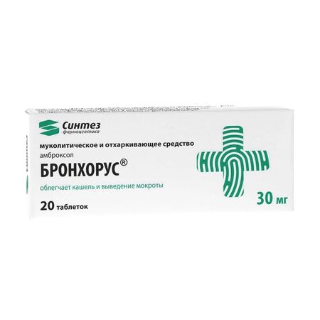 Показания Острые и хронические заболевания дыхательных путей, сопровождающиеся образованием вязкой мокроты: острый и хронический бронхит; пневмония; бронхиальная астма с затруднением отхождения мокроты; бронхоэктатическая болезнь; ХОБЛ. Фармакологическое действие Муколитический и отхаркивающий препарат. Обладает секретомоторным, секретолитическим и отхаркивающим действием. Амброксол стимулирует двигательную активность ресничек мерцательного эпителия слизистой оболочки бронхов (мукокинетическое или секретомоторное действие). Перистальтические сокращения по спирали реснитчатых (цилиарных) клеток эпителия бронхов выводят слизь из бронхиального дерева (мукоцилиарный транспорт или мукоцилиарный клиренс). Амброксол значительно улучшает мукоцилиарный транспорт. Амброксол стимулирует серозные клетки желез слизистой оболочки бронхов, увеличивает содержание слизистого компонента мокроты и нормализует нарушенное соотношение серозного и слизистого компонентов мокроты. Активируя гидролизующие ферменты и усиливая высвобождение лизосом из клеток Клара, уменьшает вязкость мокроты и ее адгезивные свойства (муколитическое или секретолитическое действие). Амброксол повышает синтез и секрецию поверхностно-активного вещества (сурфактанта) в альвеолах и бронхах. В результате этих механизмов значительно уменьшается вязкость мокроты и улучшается ее отхаркивание. При приеме внутрь действие препарата наступает через 30 мин и продолжается в течение 6-12 ч. Лекарственное взаимодействие Одновременное применение препарата Бронхорус® с противокашлевыми лекарственными средствами приводит к затруднению отхождения мокроты на фоне уменьшения кашля. Амброксол увеличивает проникновение в бронхиальный секрет амоксициллина, цефуроксима, эритромицина и доксициклина.