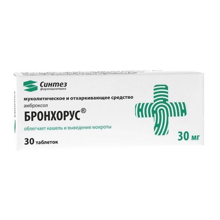 Показания Острые и хронические заболевания дыхательных путей, сопровождающиеся образованием вязкой мокроты: острый и хронический бронхит; пневмония; бронхиальная астма с затруднением отхождения мокроты; бронхоэктатическая болезнь; ХОБЛ. Фармакологическое действие Муколитический и отхаркивающий препарат. Обладает секретомоторным, секретолитическим и отхаркивающим действием. Амброксол стимулирует двигательную активность ресничек мерцательного эпителия слизистой оболочки бронхов (мукокинетическое или секретомоторное действие). Перистальтические сокращения по спирали реснитчатых (цилиарных) клеток эпителия бронхов выводят слизь из бронхиального дерева (мукоцилиарный транспорт или мукоцилиарный клиренс). Амброксол значительно улучшает мукоцилиарный транспорт. Амброксол стимулирует серозные клетки желез слизистой оболочки бронхов, увеличивает содержание слизистого компонента мокроты и нормализует нарушенное соотношение серозного и слизистого компонентов мокроты. Активируя гидролизующие ферменты и усиливая высвобождение лизосом из клеток Клара, уменьшает вязкость мокроты и ее адгезивные свойства (муколитическое или секретолитическое действие). Амброксол повышает синтез и секрецию поверхностно-активного вещества (сурфактанта) в альвеолах и бронхах. В результате этих механизмов значительно уменьшается вязкость мокроты и улучшается ее отхаркивание. При приеме внутрь действие препарата наступает через 30 мин и продолжается в течение 6-12 ч. Лекарственное взаимодействие Одновременное применение препарата Бронхорус® с противокашлевыми лекарственными средствами приводит к затруднению отхождения мокроты на фоне уменьшения кашля. Амброксол увеличивает проникновение в бронхиальный секрет амоксициллина, цефуроксима, эритромицина и доксициклина.