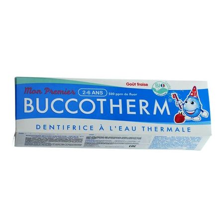 Бренд Buccotherm Франция BUCCOTHERM зубная гель-паста для детей от 2 до 6 лет с клубничным вкусом и термальной водой. Внешний вид: Консистенция — гелеобразная текстура. Цвет — красный, вкус-клубничный. Особенности: 99% натуральных ингредиентов в составе. Состоит на 49% из уникальной природной термальной воды Castera — Verduzan, Франция. Богатый комплекс микроэлементов укрепляет и заботится о здоровье полости рта. Детская зубная гель-паста обладает активным антисептическим и антибактериальным действием. Нормализует кислотно — щелочной (pH) баланс, увлажняет и способствует правильной работе слюнных желез. Оптимальная концентрация фтора (1000 ррМ) реминерализует тонкую эмаль молочных зубов, препятствует размножению патогенных бактерий и защищает от развития кариеса. Экстракт Стевии (медовая трава) — натуральный подсластитель с регенерирующим и укрепляющим иммунитет действием. Экстракт корня алтея оказывает противовоспалительный и легкий анестезирующий эффект. Помогает уменьшить дискомфорт в период смены молочных зубов постоянными. Ароматный запах и натуральный вкус клубники, помогает мотивировать ребенка к регулярной чистке зубов. RDA: