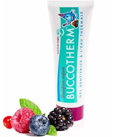 99% натуральных ингредиентов. Состоит на 51% из уникальной природной термальной воды Castera – Verduzan, Франция. Содержит богатый комплекс микроэлементов для укрепления и правильного формирования тонкой эмали молочных зубов, а также поддержания здоровья десен. Обладает антисептическим, антибактериальным и противовоспалительным действием. Нормализует кислотно – щелочной (pH) баланс в полости рта, увлажняет и способствует правильной работе слюнных желез. Диоксид кремния – безопасный абразив. Помогает качественно очистить зубной налет, не травмируя эмаль. Экстракт Стевии (медовая трава) — натуральный подсластитель, обладающий регенерирующим и укрепляющим иммунитет действием. Зубная гель-паста не содержит фтор. Ароматный запах и натуральный вкус лесных ягод, помогает мотивировать ребенка к регулярной чистке зубов. BUCCOTHERM — первый и единственный в мире бренд, создающий натуральные и уникальные средства для ухода за полостью рта, основанные на термальной родниковой воде Castera-Verduzan. Термальная родниковая вода Castera-Verduzan, берущая свое начало между Центральным массивом и Пиренеями, проходя через различные горные пласты, насыщается минеральными солями и полезными микроэлементами. RDA: