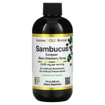 California Gold Nutrition содержит сок Sambucus Nigra, полученный из 12 000 мг европейской черной бузины и выпаренный до 2500 мг в каждой порции. Данная добавка не содержит искусственных подсластителей и искусственных консервантов.