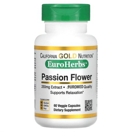 Пассифлора от California Gold Nutrition стандарта EuroHerbs™250 мг экстракта, стандартизированного до 4% флавоноидовЕвропейское качество, фармакопейный классПроисхождение пассифлоры: ЕС (обработано в Европе)Способствует расслаблению*Подходит для веганов и вегетарианцевЗеленые растительные капсулы с хлорофиллом, без искусственных красителейПродукт не содержит ГМО, глютена и соиПассифлора (Passiflora incarnata L) помогает расслабиться*. Исследования показывают, что флавоноиды, содержащиеся в Passiflora incarnata L, могут усиливать его целебное действие.