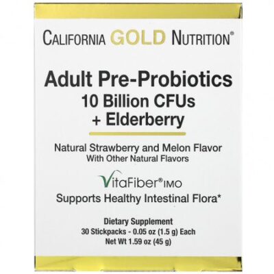 † Суточная норма не определена. Пребиотики и пробиотики для взрослых от California Gold Nutrition10 миллиардов КОЕ и бузина Со вкусом натуральной клубники и дыни Отличный вкус и удобное использование Содержит пребиотик VitaFiber®? IMO Поддерживает здоровую кишечную микрофлору* Поддерживает общее здоровье иммунной системы* Продукт не содержит глютена, ГМО и сои Производится на предприятии, которое имеет регистрацию текущей надлежащей производственной практики (cGMP) и проходит независимые проверки Гарантия 100% Gold Guarantee