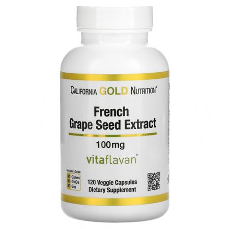 Экстракт косточек французского винограда от California Gold NutritionСодержит запатентованный экстракт виноградных косточек Vitaflavan®Создан на основе винограда, выращенного в юго-западном регионе ФранцииПоддерживает здоровье кожи, борется с пигментацией и защищает от воздействия солнца*Поддерживает здоровье сердечно-сосудистой системы, помогает нейтрализовать свободные радикалы, обеспечивает антиоксидантную защиту организма*Продукт не содержит глютена, ГМО и соиПроизводится на предприятии, которое имеет регистрацию текущей надлежащей производственной практики (cGMP) и проходит независимые проверкиГарантия 100% Gold Guarantee