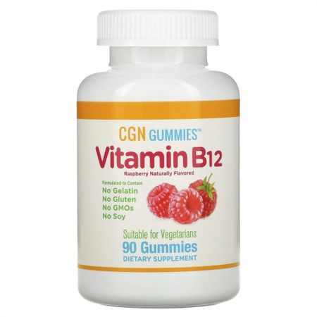 California Gold Nutrition, витамин B12, со вкусом малины, 90 жевательных мармеладок