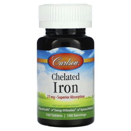 Carlson, Хелатное железо, 27 мг, 100 таблеток