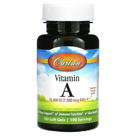 25 000 МЕ (7500 мкг RAE) Пищевая добавка Поддержка зрения Укрепление иммунитета Здоровье кожи Не содержат глютена Не содержит искусственных консервантов Гарантия качества и эффективности