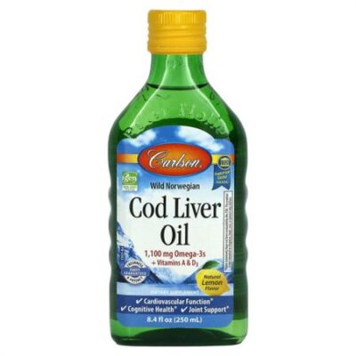 Carlson Labs, Жир печени дикой норвежской трески, натуральный лимонный вкус, 1000 мг, 250 мл (8,4 жидк. унции)