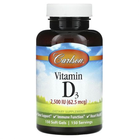 Carlson, Витамин D3, 2500 МЕ (62,5 мкг), 150 мягких таблеток