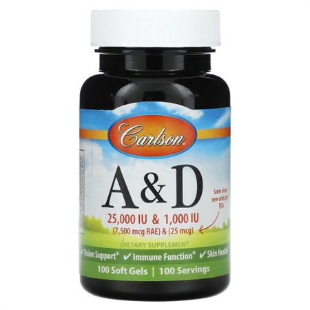Carlson, Витамины A и D, 100 мягких таблеток