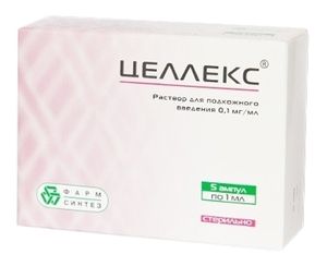 Показания к применениюОстрые нарушения мозгового кровообращения в остром и раннем реабилитационном периоде течения заболевания в составе комплексной терапии.Применение при беременности и кормлении грудьюОтсутствие соответствующих исследований не позволяет применять препарат у данного контингента больных.Противопоказания Эпилепсия, маниакальный психоз, продуктивный бред, делирий, возраст до 18 лет (в связи с недостаточностью клинических данных).Побочное действиеМогут отмечаться аллергические реакции в виде невыраженной гиперемии в месте введения, реакции гиперчувствительности (кожная сыпь, зуд, ангионевротический отек), субфебрилитет, нарушение сна, головная боль.СоставСостав на 1 мл:Активное вещество: целлекс субстанция-раствор (замороженный в пересчете на белок* 0,100 мгВспомогательное вещество: Глицина — 3,75мг Натрия гидрофосфата дигидрат — 2,99 мг Натрия дигидрофосфата моногидрат — 0,47мг Натрия хлорида — 5,85 мгВоды для инъекций до 1,0 млВзаимодействие с другими препаратамиМогут отмечаться аллергические реакции в виде невыраженной гиперемии в месте введения, реакции гиперчувствительности (кожная сыпь, зуд, ангионевротический отек), субфебрилитет, нарушение сна, головная боль.