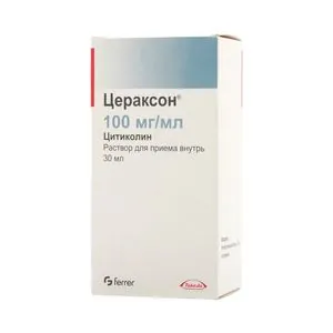 Показания к применениюОстрый период ишемического инсульта (в составе комплексной терапии). Восстановительный период ишемического и геморрагического инсультов. ЧМТ, острый (в составе комплексной терапии) и восстановительный период. Когнитивные и поведенческие нарушения при дегенеративных и сосудистых заболеваниях головногомозга.Применение при беременности и кормлении грудьюКлинических данных по применению цитиколина при беременности не достаточно. Хотя в экспериментальных исследованиях на животных отрицательного влияния не выявлено, при беременности препарат назначают только в том случае, когда ожидаемая польза терапии для матери превосходит потенциальный риск для плода. При необходимости применения препарата в период лактации следует решить вопрос о прекращении грудного вскармливания, поскольку данные о выделении цитиколина с грудным молоком отсутствуют.ПротивопоказанияГиперчувствительность к любому из компонентов Цераксона. Больные с ваготонией (преобладание тонуса парасимпатического компонента вегетативной нервной системы).Дети до 18 лет (в связи с отсутствием данных).Побочное действиеАллергические реакции (сыпь, зуд кожи, анафилактический шок), бессонница, головная боль,головокружение, возбуждение, тремор, онемение в парализованных конечностях, тошнота, снижениеаппетита, изменение активности печеночных ферментов, жар. В некоторых случаях Цераксон можетстимулировать парасимпатическую систему, а также оказывать кратковременное гипотензивное действие.СоставЦераксон — раствор для внутривенного и внутримышечного введения: 4 мл содержат цитиколин натрия 522,5 и 1045 мг, вспомогательные вещества: 1М хлористоводородная кислота или 1М натрия гидроксид — до рН 6,7-7,1, вода для инъекций — до 4 мл, в ампулах нейтрального стекла по 4 мл, в контурной ячейковой упаковке 3 ампулы, в картонной пачке 1 упаковка или в контурной ячейковой упаковке 5 ампул, в картонной пачке 1 или 2 упаковки, Цераксон — раствор для приема внутрь 100 мг/мл: 1 фл. содержит цитиколин натрия 10,45 г, вспомогательные вещества: сорбитол, глицерол, метилпарагидроксибензоат, пропилпарагидроксибензоат, глицерол формаль, натрия цитрат дигидрат, натрия сахаринат, краситель пунцовый (Понсо 4-R), ароматизатор клубничный (эссенция клубничная 1487-S-Lucta), калия сорбат, кислота лимонная 50% раствор, вода очищенная — до 100 мл, во флаконах бесцветного прозрачного стекла по 30 мл.Взаимодействие с другими препаратамиЦитиколин усиливает эффекты леводопы. Не следует назначать Цераксон одновременно с лекарственными средствами, содержащими меклофеноксат.