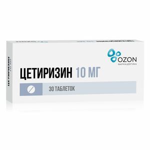 Показания к применениюЛечение симптомов круглогодичного и сезонного аллергического ринита и аллергического конъюнктивита, таких как зуд, чихание, ринорея, слезотечение, гиперемия конъюнктивы, сенная лихорадка (поллиноз), крапивница, в том числе хроническая идиопатическая крапивница, другие аллергические дерматозы, в том числе атопический дерматит, сопровождающиеся зудом и высыпаниями.ПротивопоказанияПовышенная чувствительность к цетиризину, гидроксизину или производным пиперазина, а также другим компонентам препарата, терминальная стадия почечной недостаточности (клиренс креатинина менее 10 мл/мин), непереносимость лактозы, дефицит лактазы или глюкозо-галактозная мальабсорбция, беременность, период лактации, детский возраст до 6 лет.Повышенная чувствительность к цетиризину, гидроксизину или производным пиперазина, а также другим компонентам препарата, терминальная стадия почечной недостаточности (клиренс креатинина менее 10 мл/мин), непереносимость лактозы, дефицит лактазы или глюкозо-галактозная мальабсорбция, беременность, период лактации, детский возраст до 6 лет.Состав1 таблетка содержит активное вещество: цетиризина дигидрохлорид — 10,0 мг.