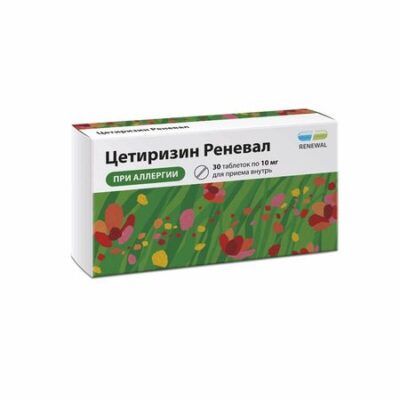 Показания Быстро всасывается из ЖКТ, Cmax после приема внутрь достигается через 1 ч. Биодоступность цетиризина при приеме в виде таблеток и сиропа одинакова. Пища не влияет на полноту всасывания (AUC), но удлиняет на 1 ч время достижения Cmax и снижает величину Cmax на 23%. При приеме в дозе 10 мг 1 раз/сут в течение 10 сут Css в плазме составляет 310 нг/мл и отмечается через 0.5-1.5 ч после приема. Связывание с белками плазмы — 93% и не меняется при концентрации цетиризина в диапазоне 25-1000 нг/мл. Фармакокинетические параметры цетиризина меняются линейно при назначении его в дозе 5-60 мг. Vd — 0.5 л/кг. В небольших количествах метаболизируется в печени путем O-деалкилирования с образованием фармакологически неактивного метаболита (в отличие от других антагонистов Н1-гистаминовых рецепторов, которые метаболизируются в печени с помощью системы цитохромов). Не кумулирует. 2/3 дозы выводится в неизмененном виде почками и около 10% — с калом. Системный клиренс — 53 мл/мин. T1/2 у взрослых — 7-10 ч, у детей в возрасте от 6 до 12 лет — 6 ч, от 2 до 6 лет — 5 ч, от 6 мес до 2 лет — 3.1 ч. У пациентов пожилого возраста T1/2 увеличивается на 50%, а системный клиренс снижается на 40% (снижение функции почек). У больных с нарушением функции почек (КК