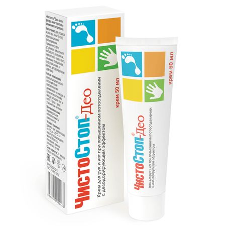 Косметический крем «Чистостоп Део» для устранения избыточной потливости, опрелости, неприятного запаха пота в подмышечных впадинах, на ладонях рук и ступнях ног. Специально подобранный состав крема берет повышенное потооделение под контроль. Активные компоненты крема способствуют нормализации работы сальных желез, снижая потливость, оказывают очищающее, подсушивающее и мягкое дезодорирующее действие, приятно охлаждают, увлажняют кожу, помогают клеткам восстанавливаться и обновляться, сохраняя защитный барьер кожи и препятствуя внешним раздражителям. Кора дуба традиционно используется для лечения кожных заболеваний. Богата антиоксидантами, органическими кислотами, пектинами, танинами. Обладает вяжущим, обвобволакивающим, иммуностимулирующим, противомикробным и противовоспалительным действием. Косточек грейпфрута экстракт обладает анитимикробной активностью, нормализует работу сальных желез. Экстракт лесного орешника (лещины) способствует укреплению стенок капилляров и вен, повышению их эластичности, улучшению местного кровообращения. Какао масло — обладает заживляющим и тонизирующим действием на кожу, широко используется в фармацевтической промышленности. Эфирное масло бергамота нормализует работу сальных желез, успокаивает раздражения и воспаления. Эфирное масло кипариса обладает способностью регулировать потооотделение. Натрия салицилат смягчает огрубевшую кожу, способствует удалению роговых наслоений. Глицерин смягчает и увляжняет кожу за счет высокой способности удерживать влагу, создает на коже защитный барьер.