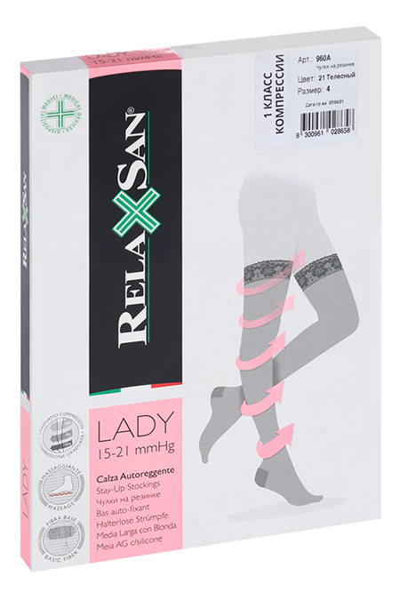 Главная » Аптека Чулки RELAXSAN Lady 1 класс компресс Calza Autoreggente на резинке р 4, пара телесный Просмотров 8 Кальце Джи Ти С р л