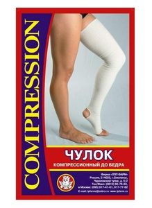 Чулок компрессионные (до бедра, выше колена), III класс компрессииДействие: чулок оказывает фиксирующее и согревающее действие на мягкие ткани и поверхностные сосуды, улучшая кровообращение и уменьшая отечность тканей, обеспечивает физиологический массаж мускулатуры, не снижая естественной пластичности движений.За счет присутствия в изделиях натуральных составляющих обеспечивается хороший воздухообмен и влагопоглощение. Чулок не раздражает кожу и не вызывает аллергических реакций, а также не теряет своих свойств при многократном использовании.