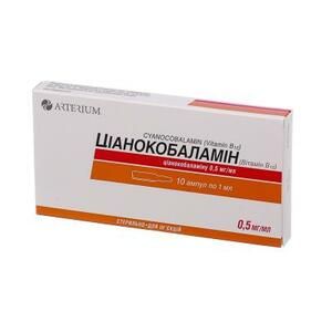 Цианокобаламин Раствор 500 мкг ампулы 1 мл 10 шт