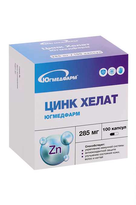 Цинк Хелат Югмедфарм, 285 мг, 100 шт, капсулы