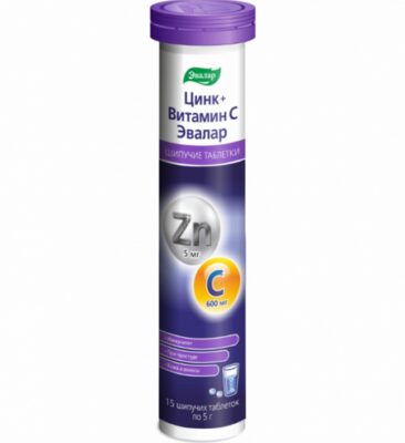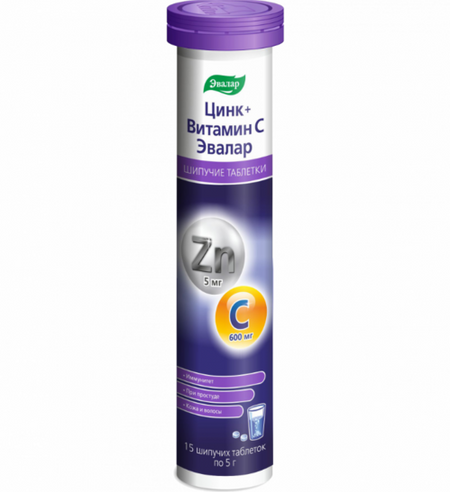 Цинк+Витамин С, 5 г, 15 шт, таблетки шипучие Эвалар