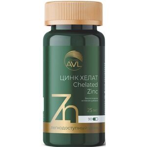 Цинка хелат — Биологически активная добавка (БАД) к пище — дополнительный источник цинка в легкодоступной формеСодержание в 1 капсуле (суточной дозировке):Цинк 25 мг 167**% от РУСП** рекомендуемый уровень суточного потребления согласно ТР ТС 022/2011 Пищевая продукция в части ее маркировки , Приложение №2,** не превышает верхний допустимый уровень потребления согласно Единым санитарно-эпидемиологическим и гигиеническим требованиям к товарам, подлежащим санитарно-эпидемиологическому надзору (контролю), Глава II, Раздел 1, Приложение №5.Входящий в состав цинк способствует: Антиоксидантная защита. Помогает бороться с оксидантным стрессом, что вкупе с противовоспалительной активностью ускоряет процесс выздоровления и снижает риск развития осложнений. 1 Укрепление иммунитета. Цинк важен для формирования и функционирования клеток, отвечающих как за врождённый иммунитет, так и за адаптивный. 13 Поддержка репродуктивной системы. Цинк влияет на работу половых гормонов, в мужском организме способствует поддержанию здоровья предстательной железы и профилактике возрастных нарушений её функционирования. 1 Улучшение состояния кожи и волос. Цинк поддерживает нормальное состояние кожи, регулирует работу сальных желёз и предотвращает выпадение волос.