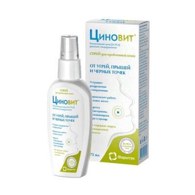 Для успешной борьбы с прыщами необходимо нормализовать работу сальных желез, восстановить нормальный отток кожного сала, устранить возможность размножения бактерий и снять воспаление. Состав Циновит спрея подобран таким образом, чтобы успешно решить все эти задачи. Инновационная формула спрея Циновит, которая включает биоактивный цинк (zinc PCA), дикалиий глицирризинат, Tetranyl U и Пантенол, обеспечивает комплексный подход к устранению угрей, прыщей и комедонов (черных точек): • нормализует обмен кожного сала • борется с воспалением • борется с бактериями, вызывающими угри и прыщи • устраняет раздражение и покраснение • не сушит кожу (не содержит спирта, салициловой кислоты и гормонов) Показания: • неосложненные формы угрей легкой степени тяжести с воспалением и без воспаления • неосложненные формы угрей средней степени тяжести с воспалением и без воспаления (в составе комплексной терапии) • профилактика появления новых угрей и комедонов