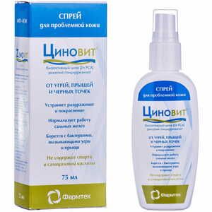 Инновационная формула спрея Циновит, которая включает биоактивный цинк (zinc PCA), дикалиий глицирризинат, Tetranyl U и Д-пантенол, обеспечивает комплексный подход к устранению угрей, прыщей и комедонов (черных точек): нормализует обмен кожного сала борется с воспалением борется с бактериями, вызывающими угри и прыщи устраняет раздражение и покраснение не сушит кожу (не содержит спирта, салициловой кислоты и гормонов).Биоактивный Zn (Zinc PCA), 1 (ингибирует 5-альфаредуктазу, снижает уровень активного тестостерона в волосяных фоликулах и сальных железах):Снижает уровень выделения кожного салаУлучшает отток кожного сала за счет снижения его вязкости и повышения эластичности стенок волосяного фолликулаДоказанное антибактериальное действие против Propionibacterium acnes, Staphylococcus epidermidis, Staphylococcus aureus, Pseudomonas aeruginosa, Escherichia coli.Влияние компонентов циновит спрея на кожу:Дикалий Глицирризинат, (активный компонент корня солодки)Доказанная противовоспалительная активность по силе сравнимая с кортизолом.Tetranyl U — Очищение и защита кожи от бактерий и грибов.ПантенолСтимуляция процесса обновления кожи, делает ее более гладкой и упругой.