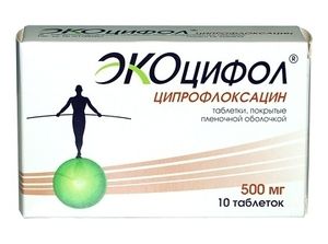Показания к применениюИнфекционно-воспалительные заболевания, вызванные чувствительными микроорганизмами: — заболевания нижних дыхательных путей (острый и хронический (в стадии обострения) бронхит, пневмония, бронхоэктатическая болезнь, инфекционные осложнения муковисцидоза); — инфекции ЛОР-органов (острый синусит); — инфекции почек и мочевыводящих путей (цистит, пиелонефрит); — осложненные интраабдоминальные инфекции (в комбинации с метронидазолом); — хронический бактериальный простатит; — неосложненная гонорея; — брюшной тиф, кампилобактериоз, шигеллез, диарея «путешественников»; — инфекции кожи и мягких тканей (инфицированные язвы, раны, ожоги, абсцессы, флегмона); — костей и суставов (остеомиелит, септический артрит); — инфекции на фоне иммунодефицита (возникающего при лечении иммунодепрессивными лекарственными средствами или у больных с нейтропенией); — профилактика и лечение легочной формы сибирской язвы. Дети: — терапия осложнений, вызванных Pseudomonas aeruginosa у детей с муковисцидозом легких от 5 до 17 лет; — профилактика и лечение легочной формы сибирской язвы (инфицирование Bacillus anthracis).Противопоказания— Гиперчувствительность; — одновременный прием с тизанидином (риск выраженного снижения артериального давления, сонливости); — возраст до 18 лет (до завершения процесса формирования скелета, кроме терапии осложнений, вызванных Pseudomonas aeruginosa у детей с муковисцидозом легких от 5 до 17 лет; профилактики и лечения легочной формы сибирской язвы); — беременность; — период лактации. С осторожностью Выраженный атеросклероз сосудов головного мозга, нарушение мозгового кровообращения, психические заболевания, эпилепсия, выраженная почечная и/или печеночная недостаточность, пожилой возраст.СоставЦипрофлоксацин (в форме гидрохлорида моногидрата) 500 мг Вспомогательные вещества: лактулоза — 600 мг, повидон низкомолекулярный — 28 мг, кроскармеллоза натрия — 65 мг, целлюлоза микрокристаллическая — 60 мг, магния стеарат — 10 мг, крахмал кукурузный — до 1400 мг. Состав пленочной оболочки: (гипромеллоза — 19.04 мг, макрогол-4000 — 8.32 мг, тальк — 2.2 мг, титана диоксид — 10.44 мг) — до 1440 мг.