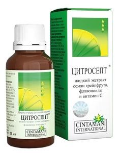 Противогрибковое (фунгицидное и фунгистатическое), антибактериальное, противовирусное. Цитросепт® воздействует на 100 видов грибов и дрожжей (Aspergillus, Candida, T.rabrum, T.mentagrophytes, T.tonsurans, Epidermophyton floccosum и др.), а также более 800 штаммов, грамположительных и грамотрицательных бактерий (среди них стрептококки, стафилококки, Escherichia, Klebsiella, Prevotella, Proteus, Salmonella, Shigella и др.). Цитросепт® кратковременно блокирует цитохром Р-450 в печени и пищеварительном тракте.Антибактериальное воздействие основано на повреждении цитоплазменной оболочки, клеточной стенки и на сдерживании синтеза аминокислот.Действие препарата продолжается 1-2 дня. Анаэробно разрушается без следов.Цитросепт® обладает высокой биодоступностью благодаря низкомолекулярному весу (565).Доказано воздействие Цитросепт® на Herpes Simplex, Сhlamydia, Trichomonas и др.20-летний мировой опыт применения Цитросепта® показал его высокую эффективность, хорошую переносимость и безопасность.Он не вызывает привыкания, зависимости и не разрушает внутреннюю микрофлору.Биофлавоноиды, содержащиеся в препарате, способствуют синтезу белков, предназначенных для синтеза специфических антител, могут оказывать регулирующее действие на метаболизм эндо- и экзогенных липофильных соединений и нормализуют все виды обмена (включая холестерин низкой плотности).Они оказывают противовоспалительное, противоревматическое и антиаллергическое действие, восстанавливают стенки сосудов, регулируют их проницаемость, улучшают кровообращение, нормализуют повышенную свертываемость крови, препятствуют образованию тромбов и обладают антиоксидантными свойствами.Эти соединения устраняют толерантность к углеводам (снижают уровень сахара), значительно ограничивают рост новообразований, включая новообразования кожи, защищают от радиации. Их регулярный прием задерживает развитие гипертонии и атеросклероза.Биофлавоноиды поддерживают печень — способствуют выведению отработанных продуктов жизнедеятельности организма — эндотоксинов (шлаков) и обладают желчегонным эффектом.Среднее употребление биофлавоноидов в развитых странах составляет ежедневно 0,5-1 г.Действие Цитросепта® для снижения веса: способствует снижению аппетита, ускоряет метаболические процессы, флавоноиды расщепляют жировые отложения.Внешний вид и свойства:Жидкость обладает слабым запахом и сладковато горьким вкусом.Содержание в мг/10 капель:65 мг биофлавоноидов (кверцетин, гесперидин, нарингин и др.) (217 % от среднего нормы потребления)15 мг витамина С (25% от средней нормы потребления)Компоненты комплекса полезны: В сезон простуд Для повышения защитных сил организма При ослабленном иммунитете Для восстановления после перенесенных простудных заболеваний Для профилактики перед сезоном простуд Для защиты от негативного действия свободных радикалов В комплексной противогрибковой (фунгицидной и фунгистатической) терапии по широкому спектру штаммов грибков. В комплексной против дрожжевой терапии по широкому спектру штаммов грамположительных и грамотрицательных бактерий В комплексной терапии по снижению массы телаПреимущества комплекса: Цитросепт® оказывает разностороннюю поддержку иммунной системы Биофлавоноиды, содержащиеся в препарате, способствуют синтезу белков, предназначенных для синтеза специфических антител, могут оказывать регулирующее дейст