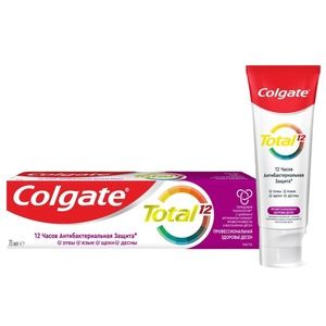 Чтобы улучшить здоровье ваших десен и уменьшить их кровоточивость, они нуждаются в защите от бактерий, которые являются основной причиной их воспаления. Поэтому передовая формула нового Colgate Total 12 Профессиональная Здоровье Десен борется с бактериями не только на зубах, но и на языке, щеках и деснах в течение 12 часов* Почувствуйте разницу с уверенной, яркой и здоровой улыбкой! Новый Colgate Total 12 Профессиональная Здоровье Десен содержит передовую формулу, которая борется с распространением бактерий вдоль линии десен — ключевой причиной воспаления десен Помогает улучшить здоровье десен, уменьшая их кровоточивость и воспаление Борется с бактериями не только на зубах, но и на языке, щеках и деснах в течение 12 часов*: лучшая зубная паста для здоровья всей полости рта в линейке Colgate** Colgate Total 12 Профессиональная Здоровье Десен ежедневно обеспечивает превосходную защиту от налета, признаков воспаления десен при борьбе с бактериями, нейтрализацию неприятного запаха изо рта, защиту от разрушения эмали, повышенной чувствительности зубов, кариеса, налета, зубного камня, потемнений на эмали и проблем с деснами* При ежедневном использовании в течение 4 недель** Новый Colgate Total обладает большим, чем когда-либо количеством преимуществ