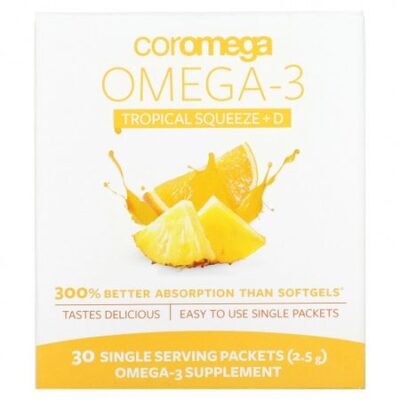 Coromega, Omega-3 + Vit D, тропический апельсин, 30 одноразовых пакетиков, 2,5 г каждый