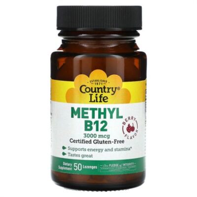 Country Life, Метил B12, ягодный, 3000 мкг, 50 пастилок