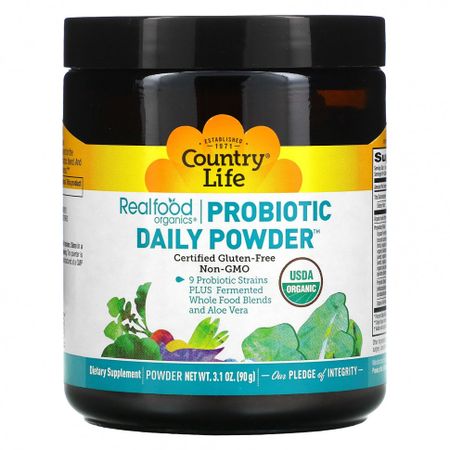 Country Life, Realfood Organics, пробиотики в порошке на каждый день, 3.1 унций (90 г)
