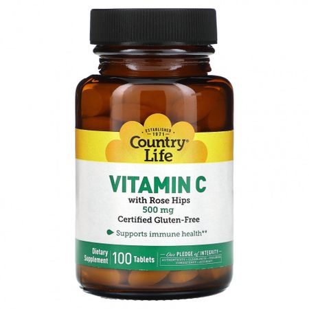 Country Life, Витамин C с шиповником, 500 мг, 100 таблеток