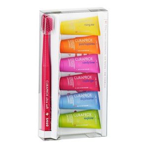 Главная » Аптека Curaprox Be you Набор 6 вкусов Паста 6 х 10 мл + щетка зубная ультрамягкая Просмотров 9 Набор из 6 паст с абсолютно разными вкусами и зубной щеткой Curaden
